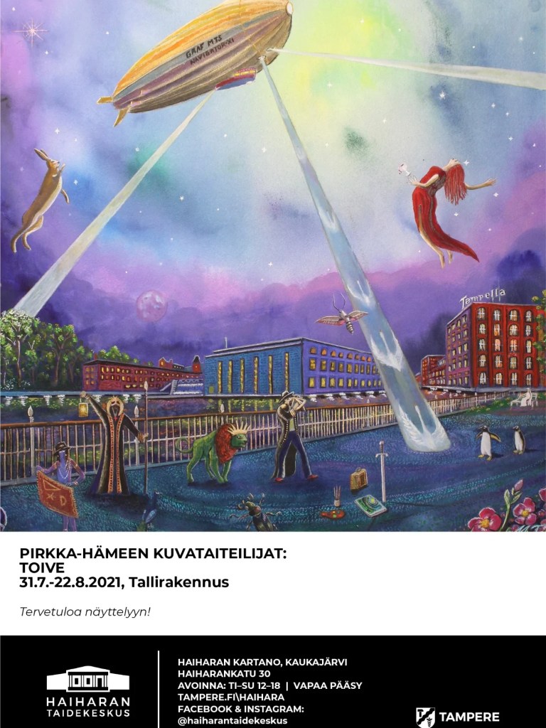 8.-31.7.2023 Pirkka-Hämeen Kuvataiteilijat ry jyrytetty Juhlat – näyttely yhdistyksen 70-vuotisen taipaleen kunniksi. Esillä kolme teosta.